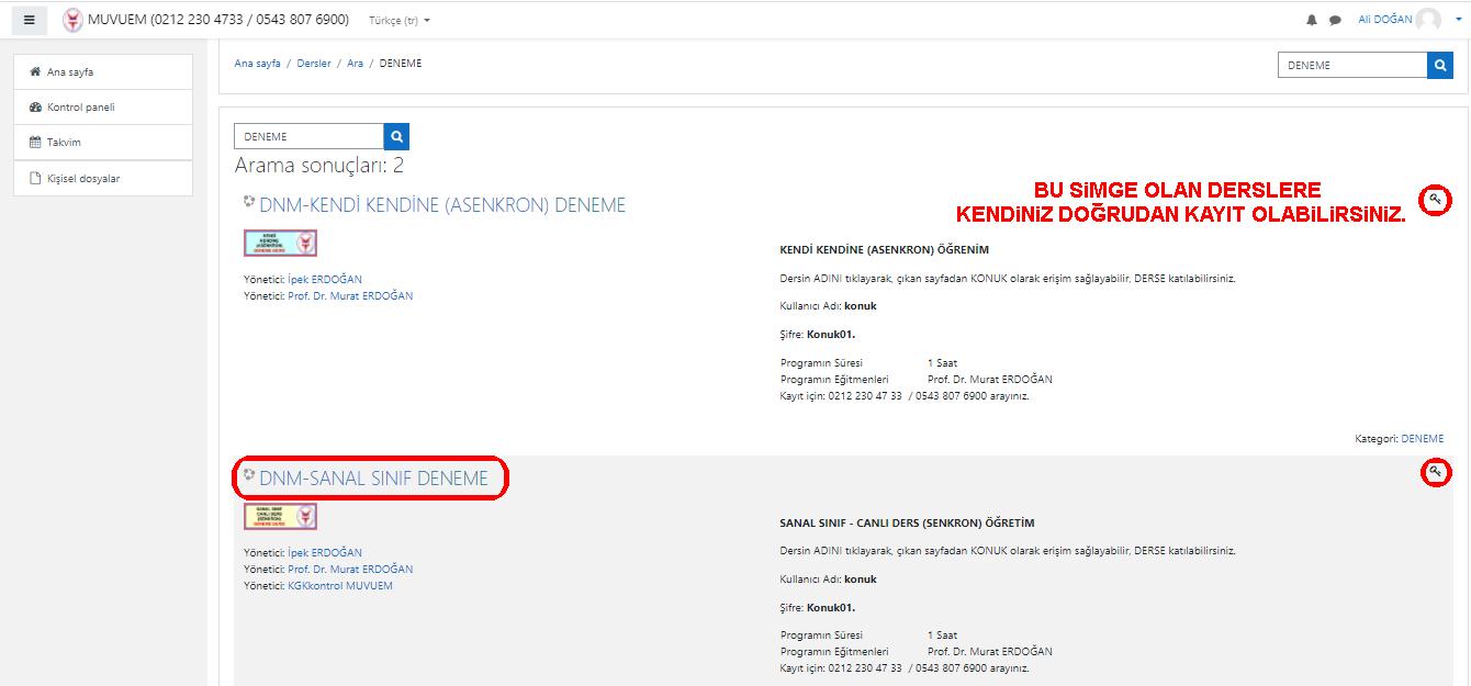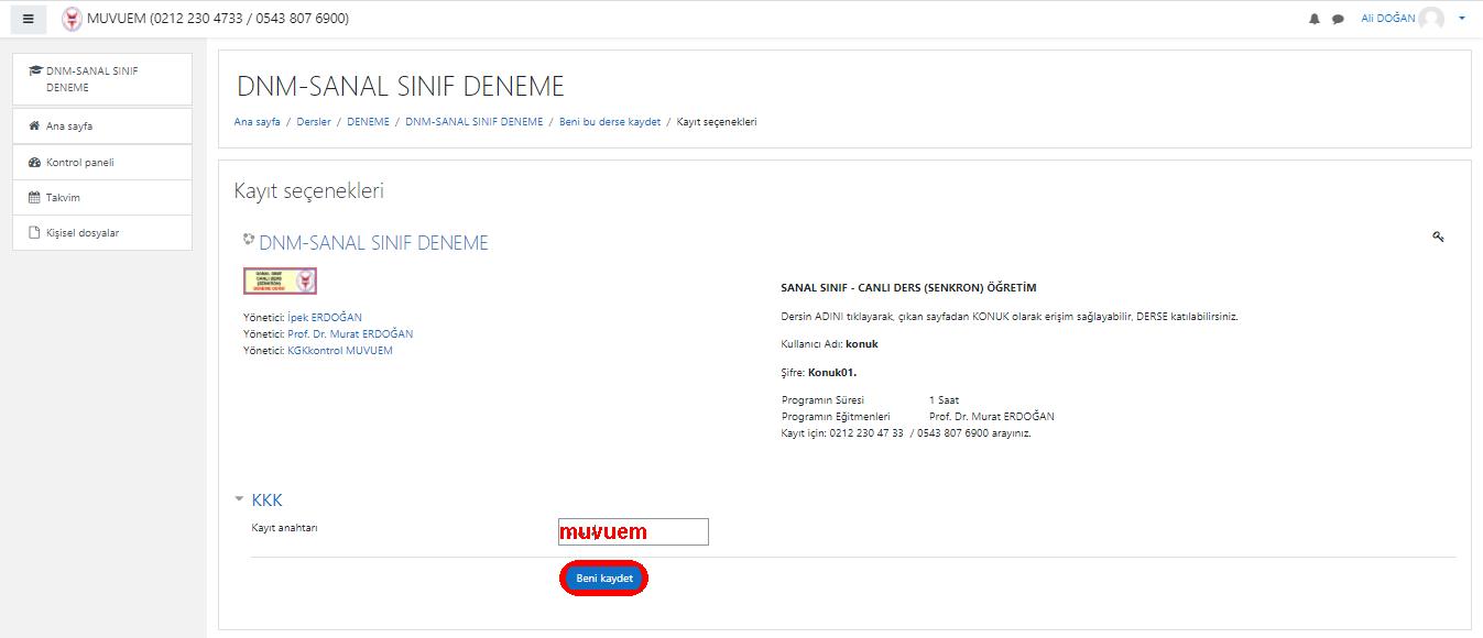 KAYIT ANAHTARI kutusuna muvuem yazarak BENİ KAYDET tuşunu tıklayarak derse doğrudan kayıt olabilirsiniz. 14.