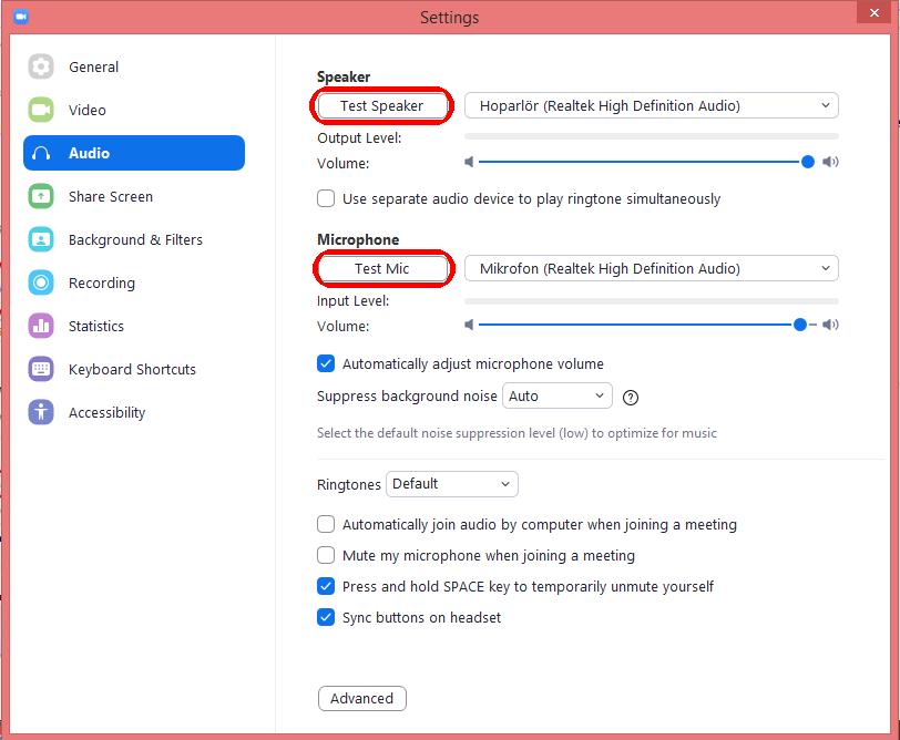 Bilgisayarınızın SES ayarlarını yapmak için sırasıyla TEST SPEAKER ve TEST MIC düğmelerini tıklayın. ***