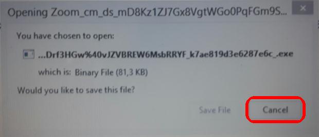 Yüklediğiniz masa üstü ZOOM programının çalışabilmesi için CANCEL düğmesini tıklayın. 16.