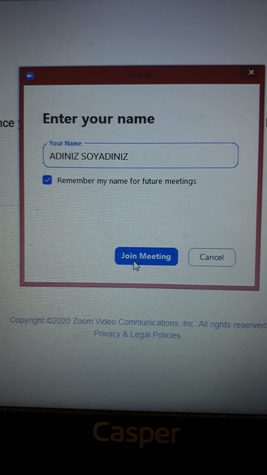 YOUR NAME penceresini ADINIZı SOYADINIZı yazdıktan sonra JOIN MEETING düğmesini tıklayın. 19.
