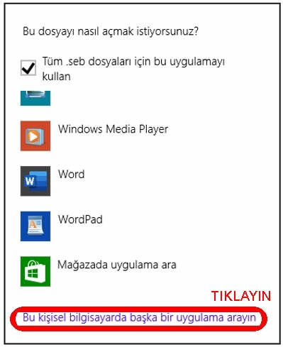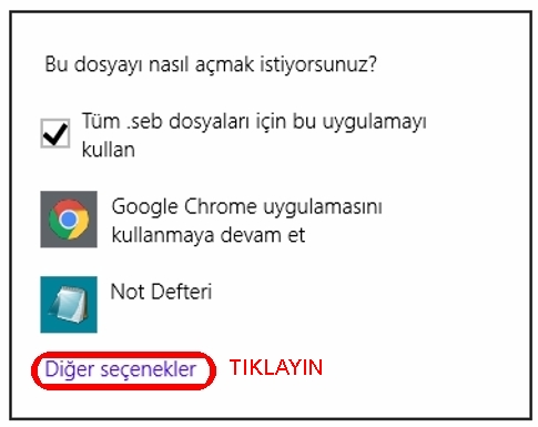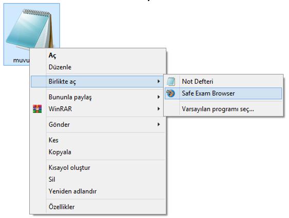 indirdiğiniz muvuem_2021.seb dosyasını sağ tıklayın, Birlikte aç tıklayın, Safe Exam